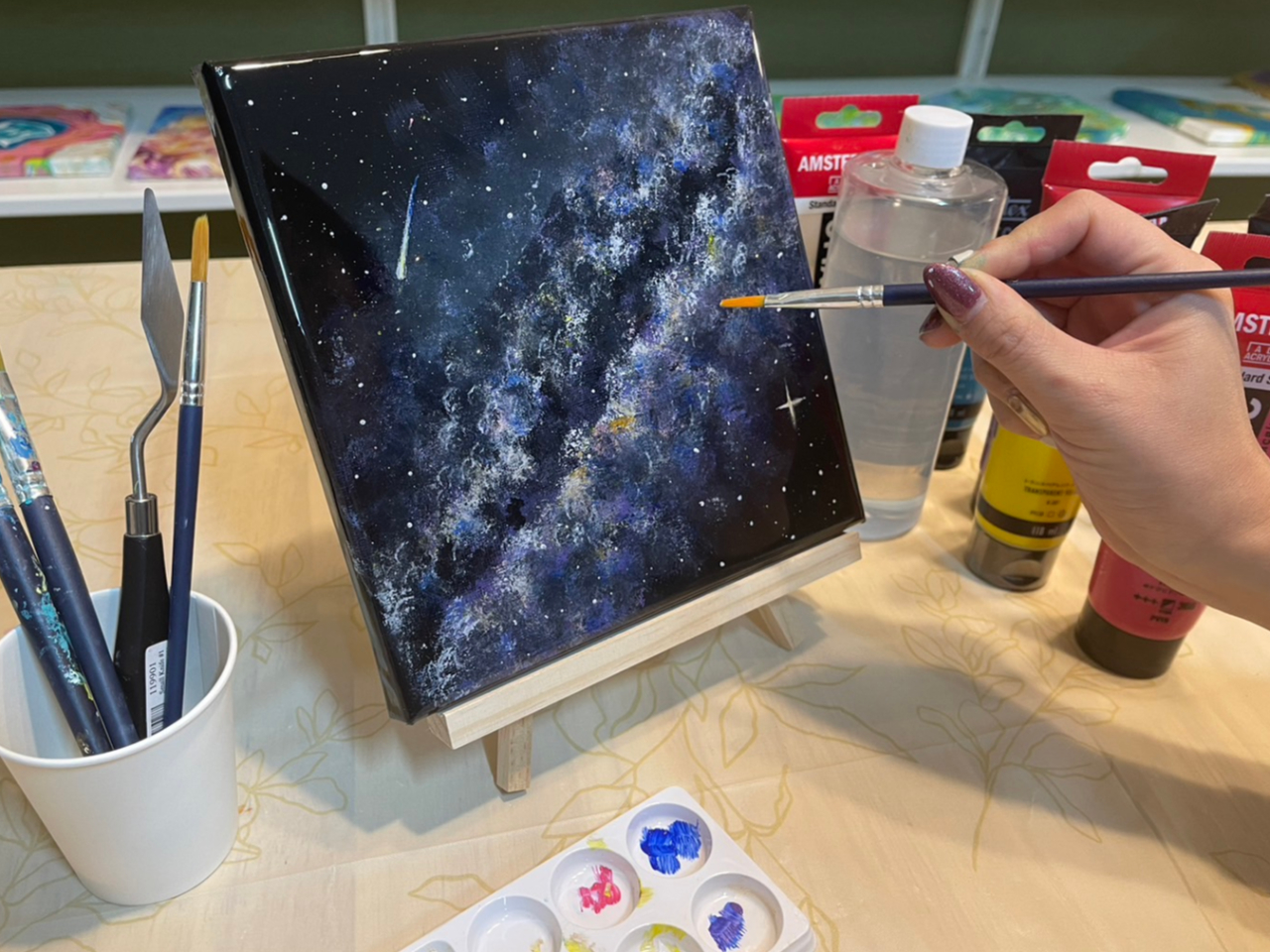 美しい天の川や銀河を、絵画や芸術の経験がなくても、簡単にあっという間に美しく描ける宇宙アート!絵画やアートの経験がなくても、初めての方でも安心!初心者やカップルにもおすすめ!
