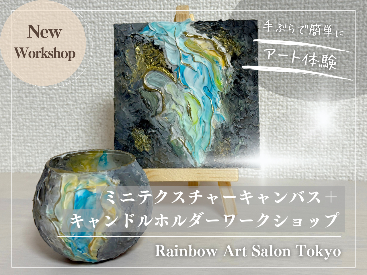 【東京】テクスチャーアート(ミニキャンバス&キャンドルホルダー)体験ワークショップ【恵比寿】【カップル・ご友人・女性同士・ファミリー向け】