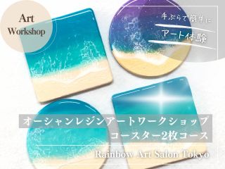 【東京】オーシャンレジン(海レジン)アート体験ワークショップ コースター2枚【恵比寿】【カップル・ご友人・女性同士・ファミリー向け】