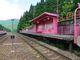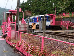 駅全体がピンク色に染まっています。恋の付く駅は全国に4か所ありますが、ここはそのうちの1か所です。車で行ったのですが、国道373号から急こう配の細道を上り高架の線路下を通って左に入ります。駅前には2〜3台駐車できるスペースがあります。トイレは無しです。