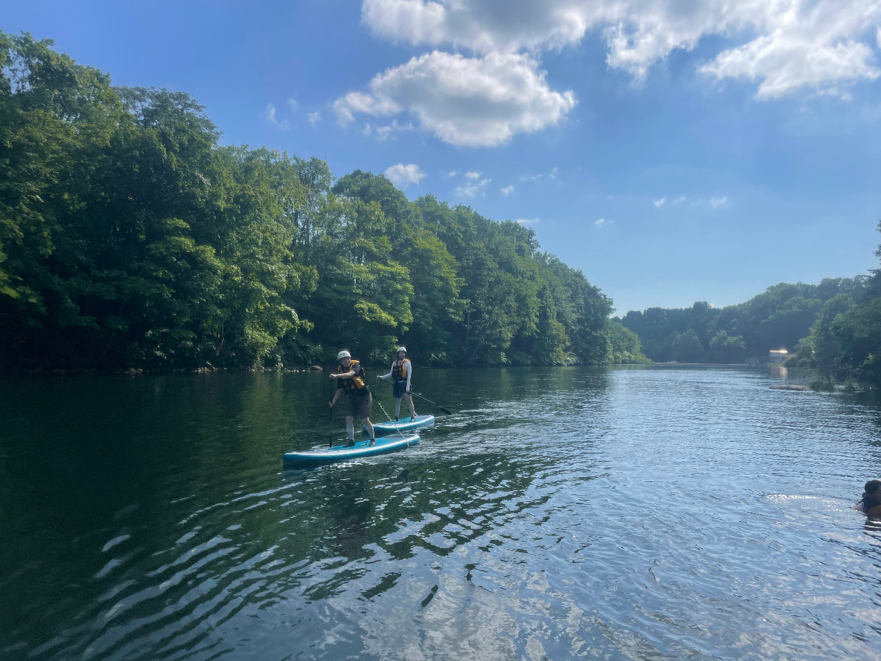 サーフボードよりもひと回り大きく浮力の高いボードの上に立ち、パドルを使い自分自身で漕いで進むアクティビティです。