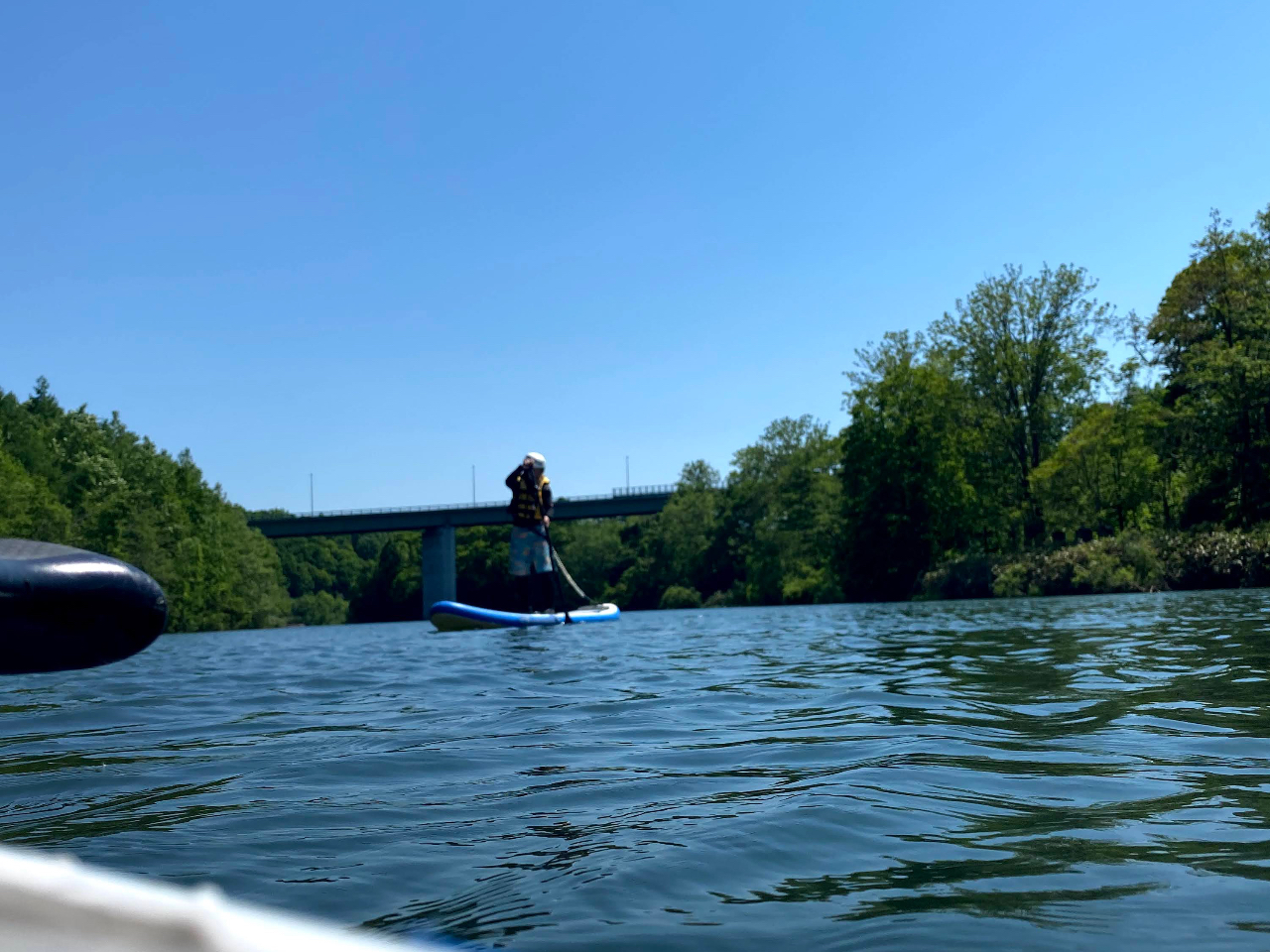 穏やかな流れの中で自由にボート操作をして自分好みのビューポイントを探してみよう♪サップ・SUP(スタンドアップパドル)