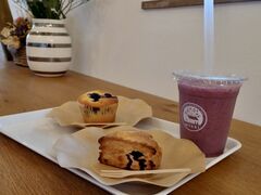 受付をしたカフェはとても可愛らしく、入った瞬間焼き菓子の良い香りがする癒し空間。生のブルーベリーを満喫した後は、休憩がてらスイーツもいただきました。