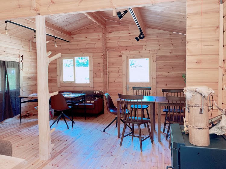 宿泊場所は徒歩5分のところにキャンプ場のコテージ・ログハウスがあります。