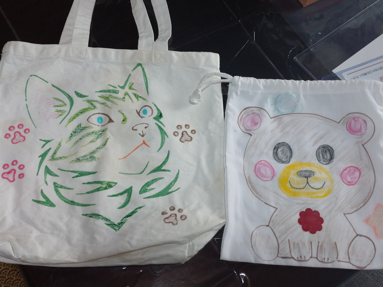 布用マーカーで自分だけの絵描きバッグを作りませんか?絵が描けなくっても型があるので大丈夫(*'ω'*)お子様から大人様まで楽しくレッツお絵描き