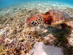 浜から泳ぎ出してすぐにウミガメさんに出会え、一緒に泳げた時間は特別でした。