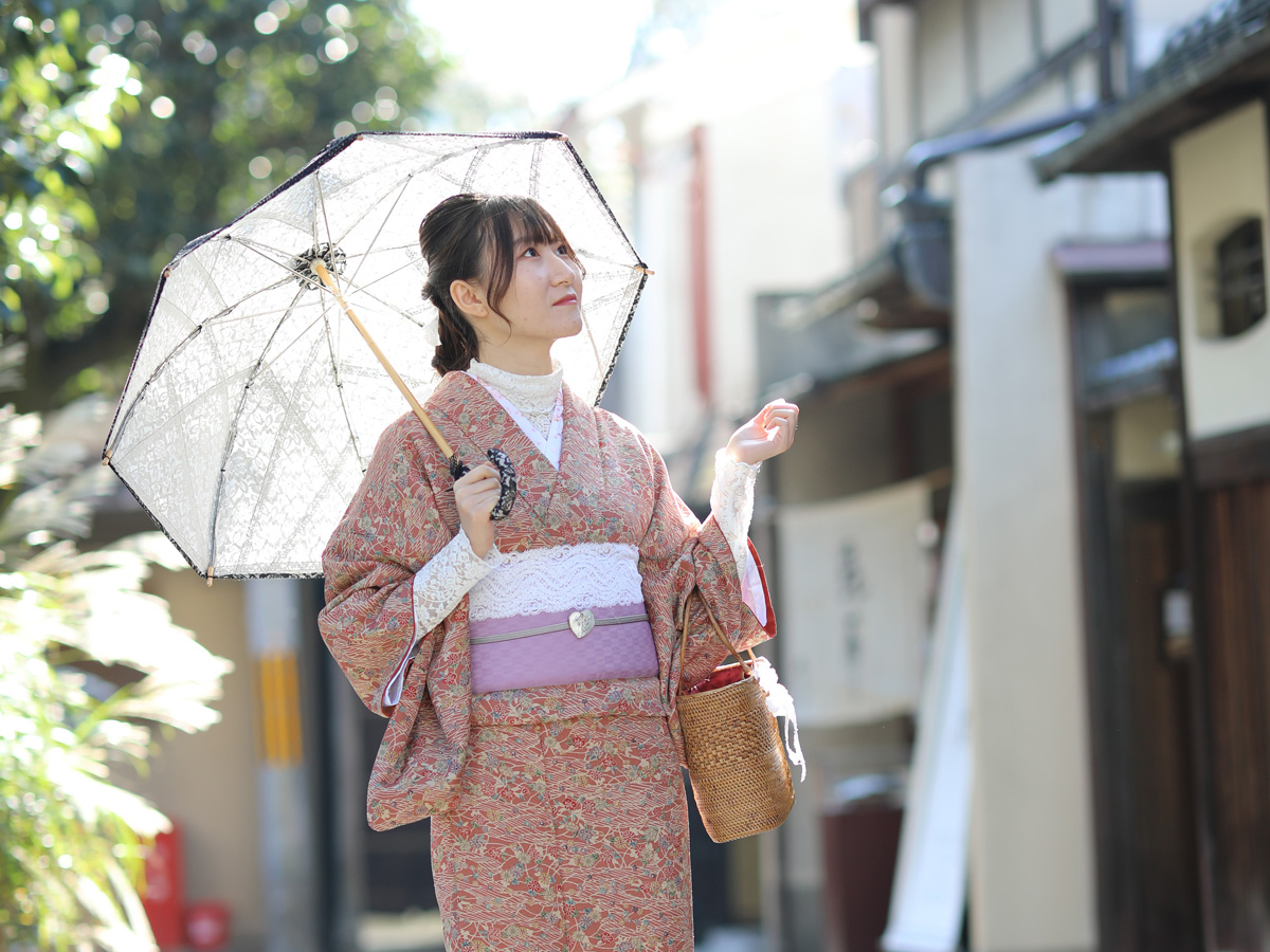お得な学生限定プラン!小紋・アンティーク・レースなど様々な着物からお好きな着物をお選びいただけます!ヘアセットや髪飾りなども含まれていて追加料金がないのでご安心ください。