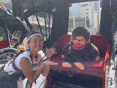 あっという間の体験でした。なんと女性にひいてもらえてとってもお話も弾み楽しい時間でした。人力車から見る浅草は新鮮に感じました。途中写真も撮ってもらえたのですが自分じゃ思いつかないアングルで素敵な映え写真が撮れました。おすすめです♪モンチッチと一緒に乗れるキャンペーンも開催中でした。7月末までのれるみたい!いろんなコラボとかもやってる楽しい会社みたいです。