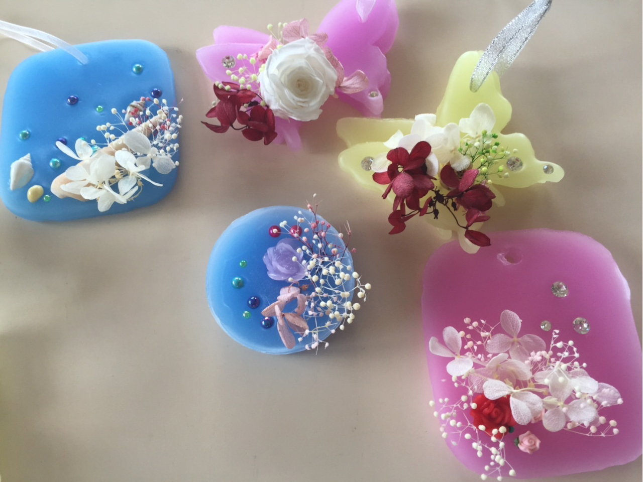 【デザインアロマワックスサシェ】*お好きな色と香り、お花とパールを使って2つ作れます♪ カップル・女性にオススメ!当日お持ち帰りOK