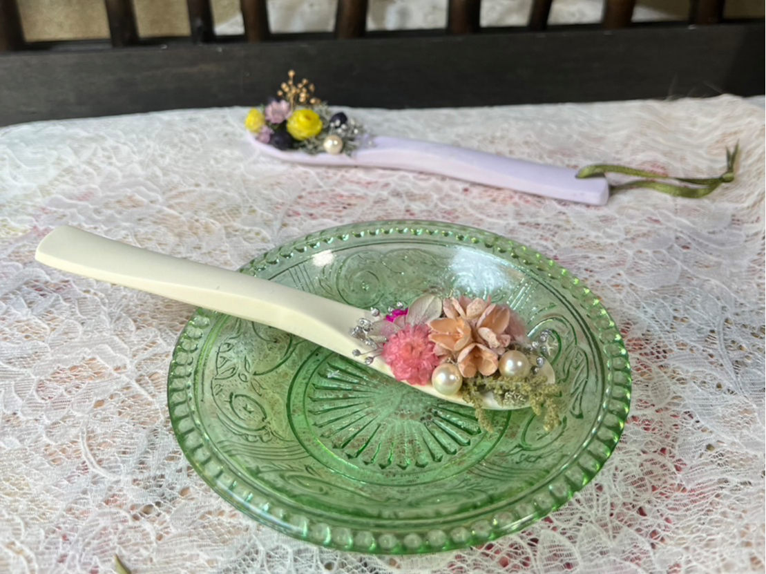 【アロマストーンのフラワースプーン】*お好きな色と香りで作ったアロマストーンにお花とパールをのせて2本作ります♪アロマストーンづくり体験* カップル・女性にオススメ!当日お持ち帰りOK
