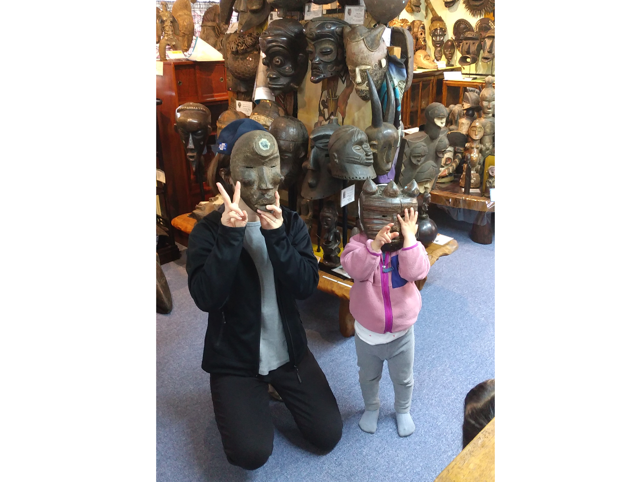 ここでは実際に民族仮面を装着体験したりからくり仮面の操作をしたりして、特別な体験をしていただけます!民族仮面や展示用のアンティーク家具を通して、多くの人や子供達に世界に目を向けていただけますように♪