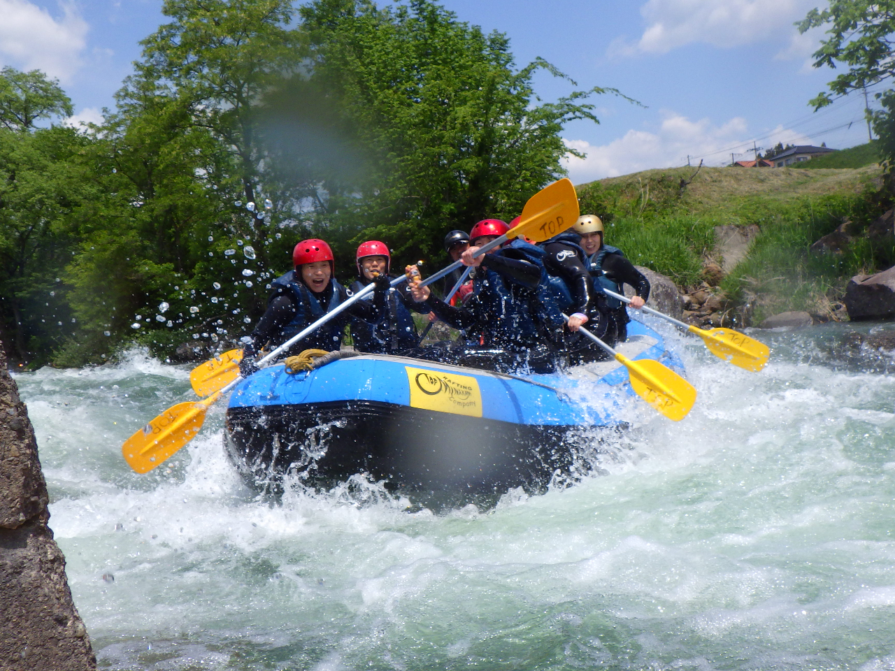 ラフティングは8人乗りのゴムボートに乗り、激流を下るスポーツです。