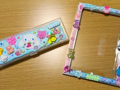 この日作った(デコった)ペンケースとフォトフレーム。