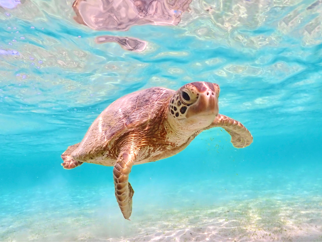 美しい宮古島の海で、ウミガメとの出会いをお楽しみください。