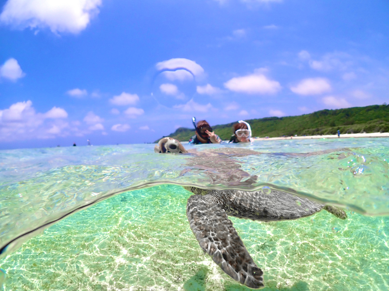宮古島の美しい海で、ウミガメとの特別な出会いを。