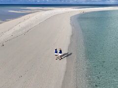 2人で息を合わせてオールを漕ぎ、着いた先は宮古ブルーの海に囲まれた白い砂浜!日常では体験できないことができ大満足です。
