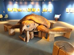 ウミガメの展示コーナーも充実していて楽しい。子ガメ水槽では、今年卵からかえった数匹の子ガメたちが愛想をふりまいています。ウミガメプールでは餌やりもできます。