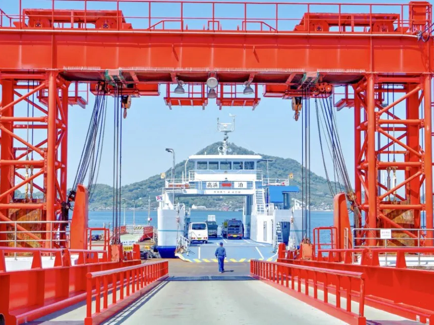 松山市からフェリーに乗り、約10分で興居島に到着します。自転車と一緒にフェリーに乗れるので、移動もスムーズです。