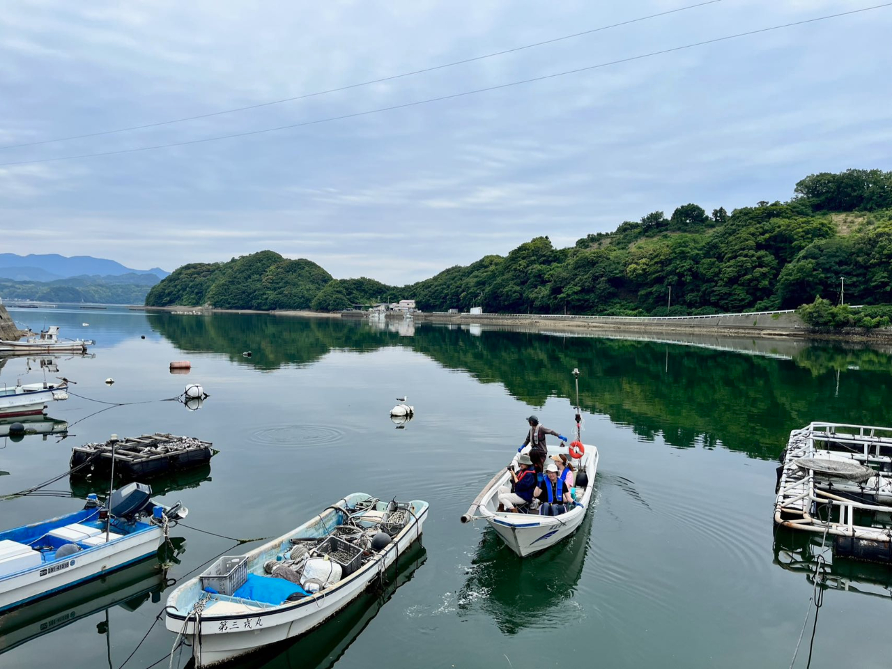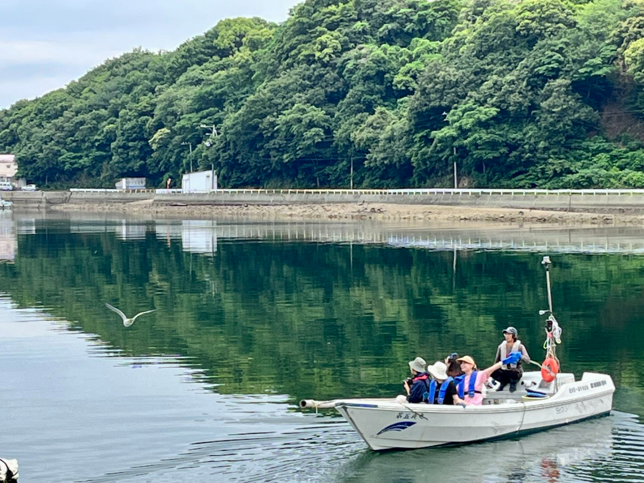 獲れた海の生き物を触ったり、観察したり、穏やかなリアス式湾の中で