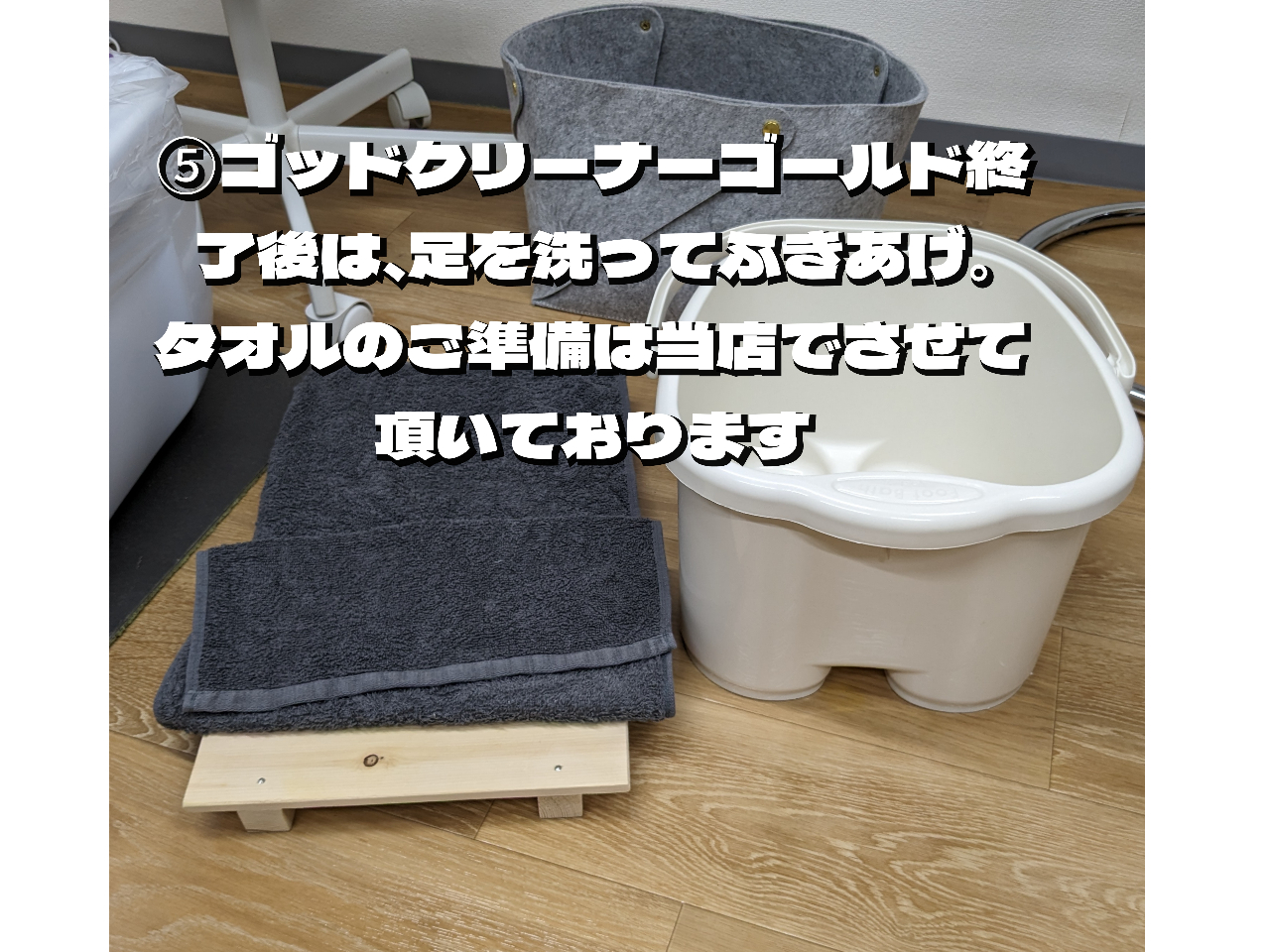 終了後、脚をすすいでいただき、さっぱりしてください。タオルなどは準備していますので手ぶらでおいでいただけます。水素の力で足がしっとりします。