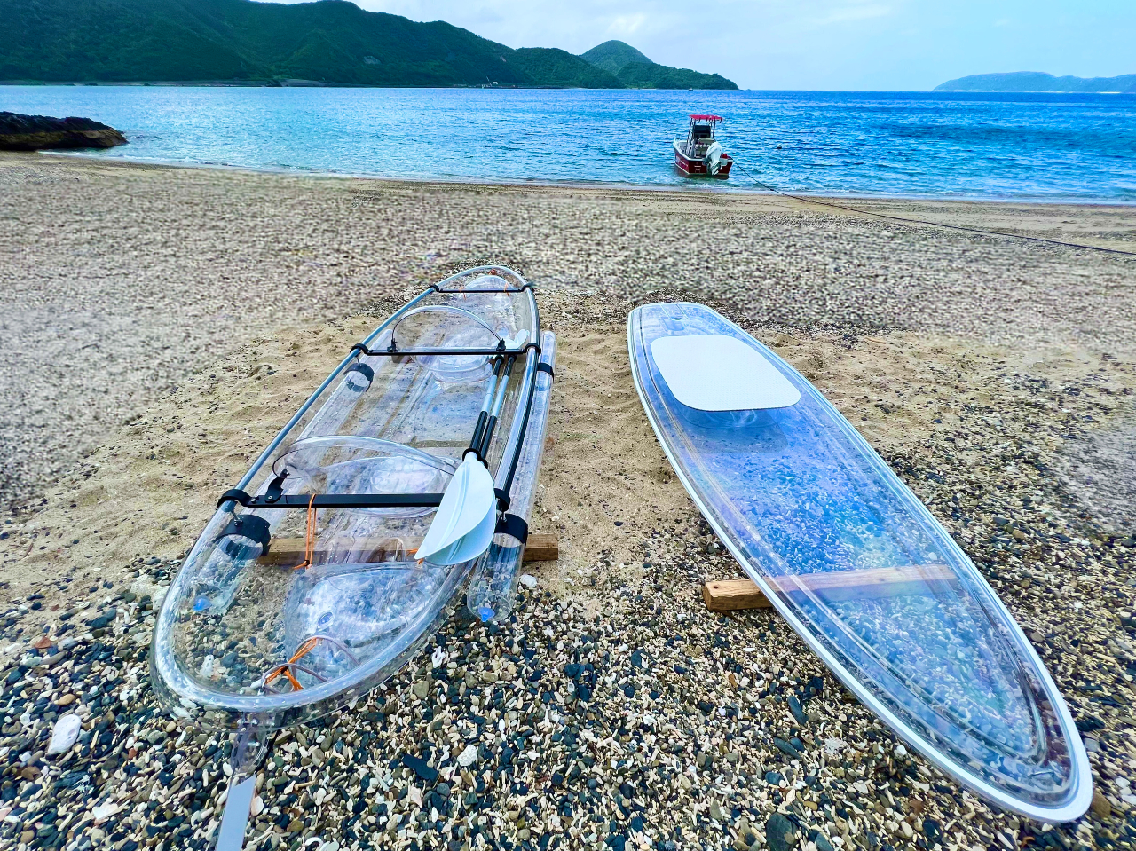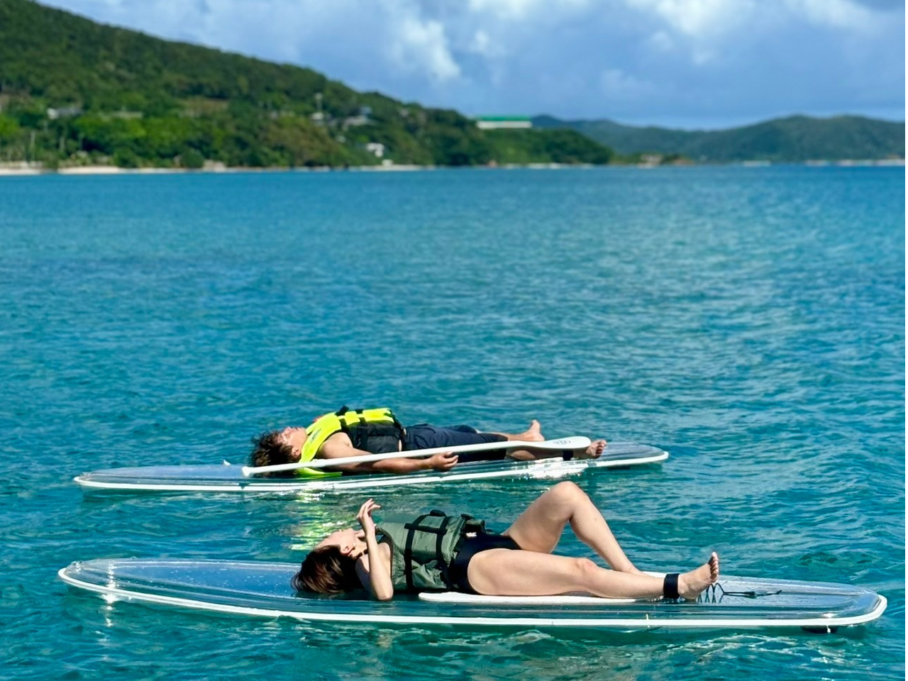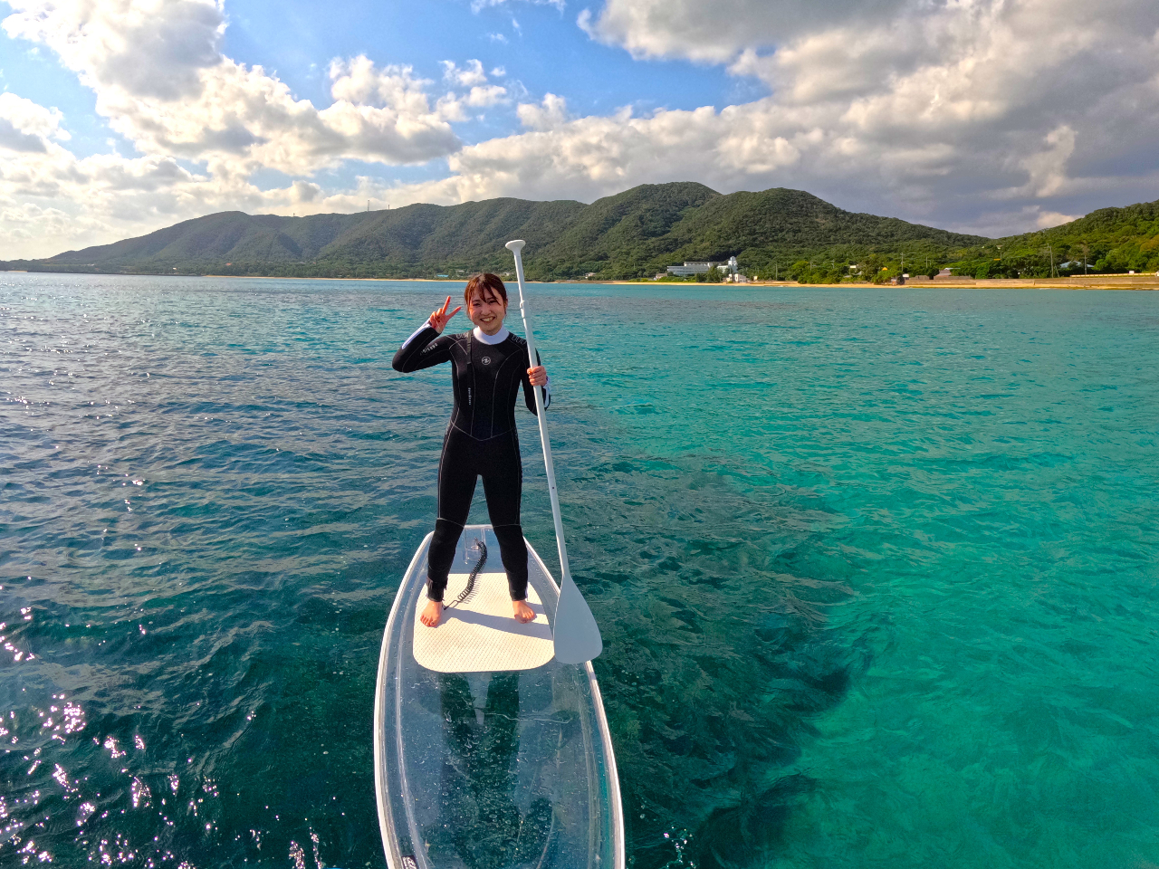このツアーでは艇体すべてが透明なクリアSUPで奄美の海をご案内!