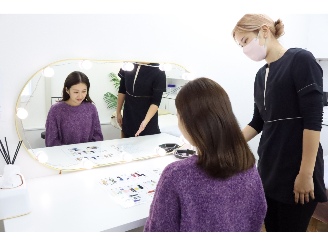 お客様が望みを叶えたいと、メニューの強化にも注力しています。そのひとつが、当店が開発した「GlowUp診断」。骨格・パーソナルカラー・顔タイプ診断を組み合わせたオリジナルメニューです。