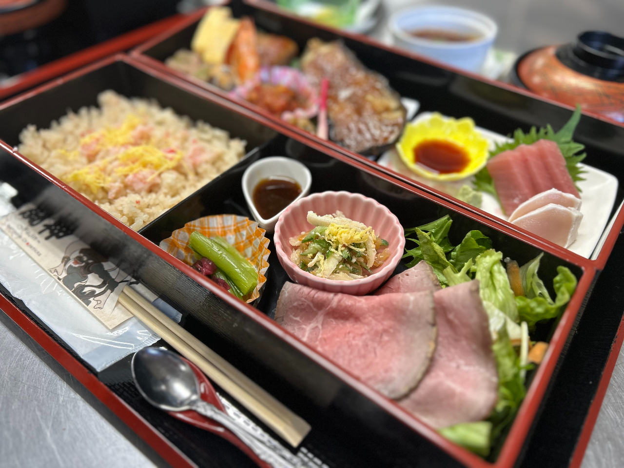 昼食には『二段重箱弁当』を客室にてお召し上がりいただけます。