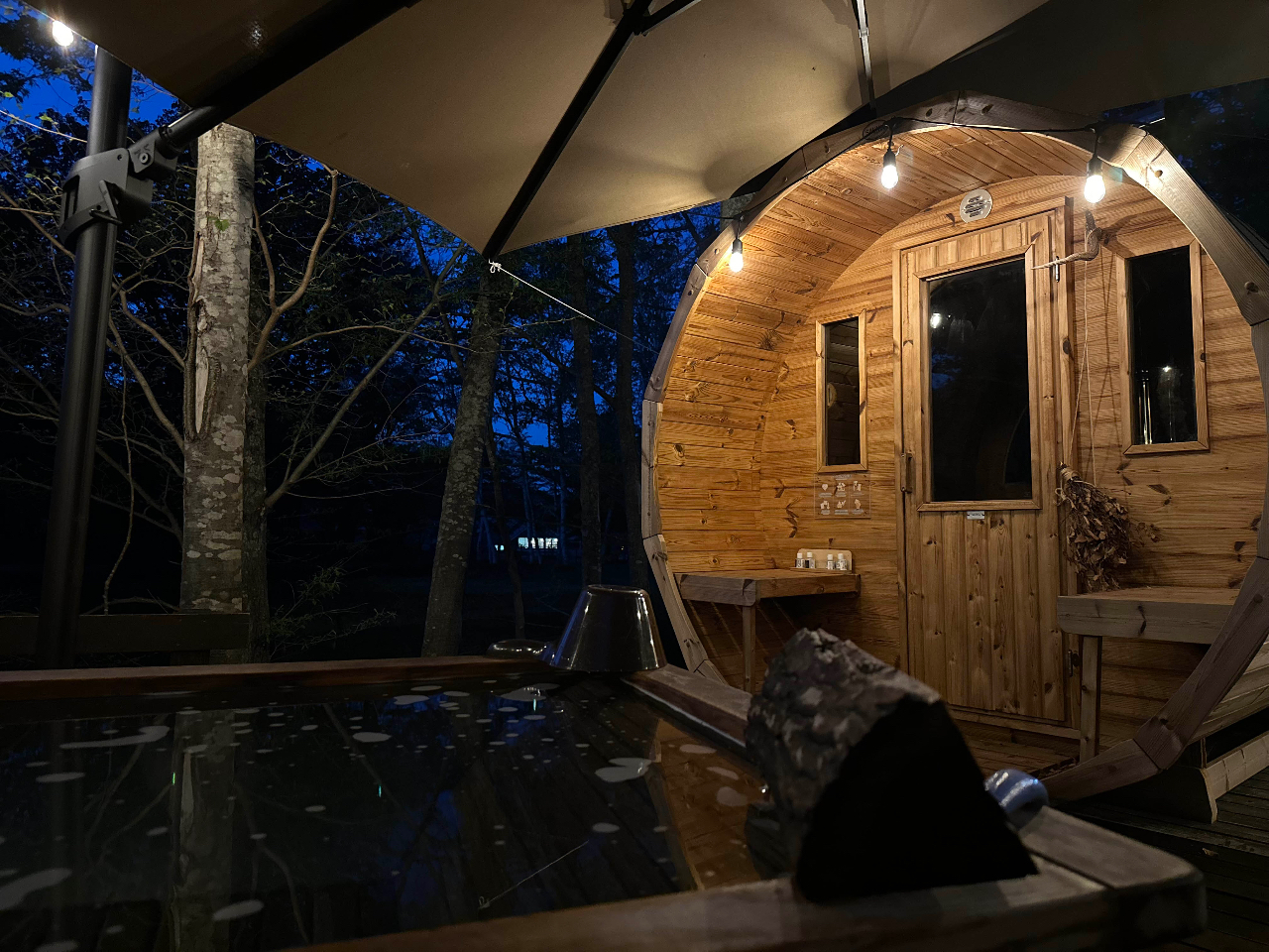 サウナの本場、フィンランドから来たサウニアのバレルサウナ。薪火のぬくもりを感じながら本場ロウリュもお楽しみいただけます♪