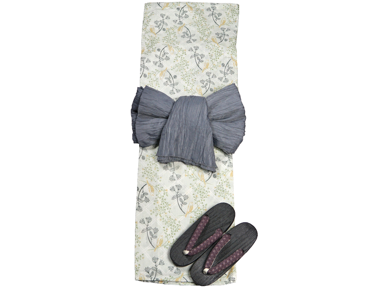 帯のアレンジも自由自在!髪飾りや下駄など小物にも拘った振袖レンタルです。着物・浴衣レンタル・着付け体験