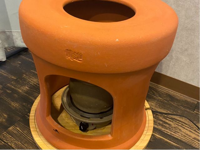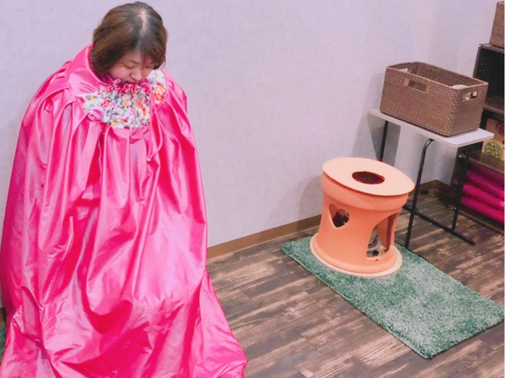 穴が開いたよもぎ蒸し用のイスに座って、その下でよもぎを入れた鍋を煮立てます。