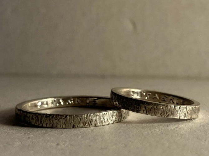 指輪の内側にヴィンテージの刻印機でアルファベットや数字などを「無料」でおいれします!