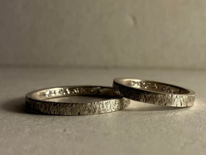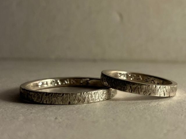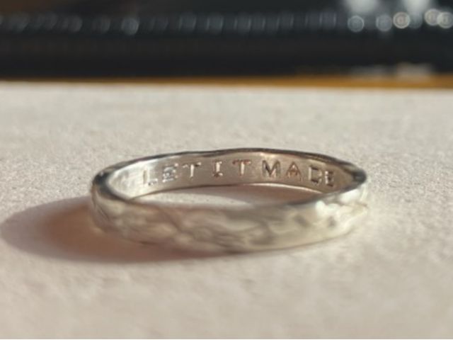 指輪の内側にヴィンテージの刻印機でアルファベットや数字などを「無料」でおいれします!