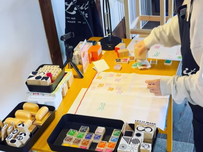 知多木綿にLET IT MADEオリジナルスタンプにて