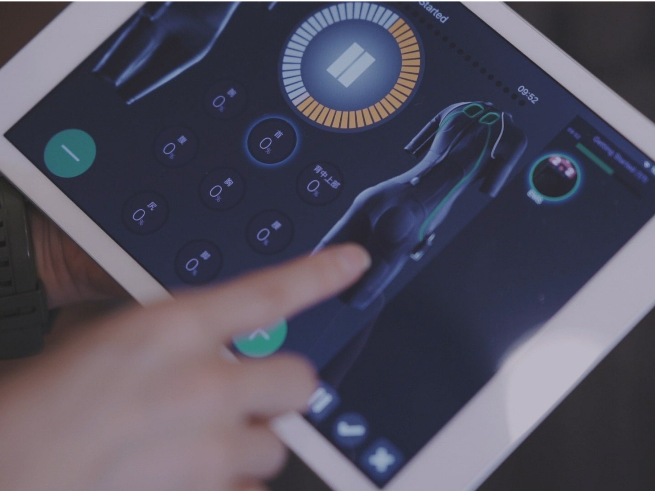 スーツに内蔵された電極が皮膚を通じて狙った筋肉に電気信号を送り刺激を与えます。