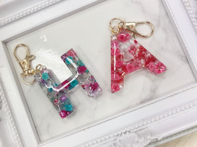 A~Z.0~9までの希望の英数字に好きなお花やラメを入れてオリジナルイニシャルチャームを作りませんか♪