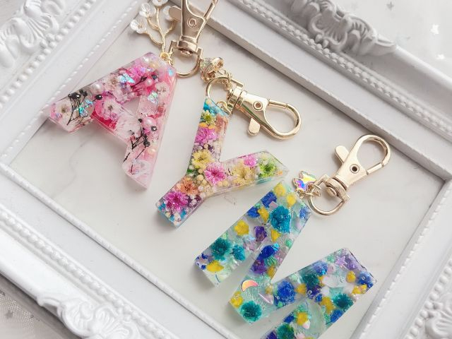 A~Z.0~9までの希望の英数字に好きなお花やラメを入れてオリジナルイニシャルチャームを作りませんか♪