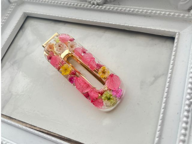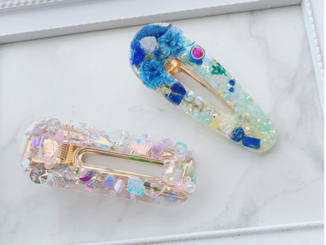 お好きなお花やパーツを入れてオリジナルのヘアクリップが作れます。
