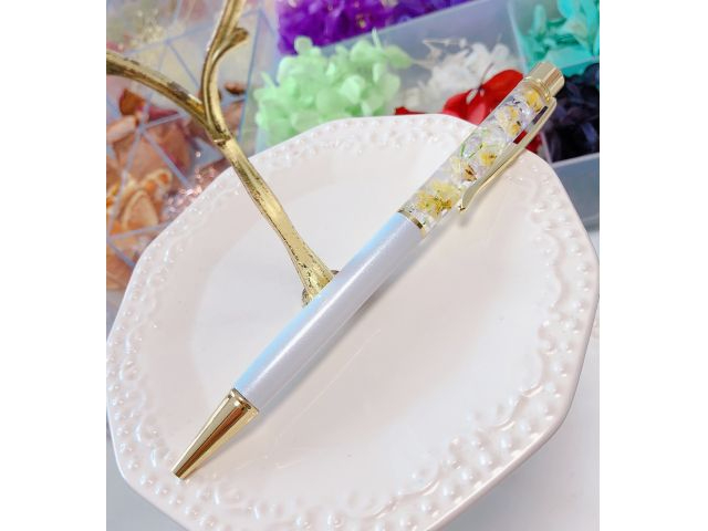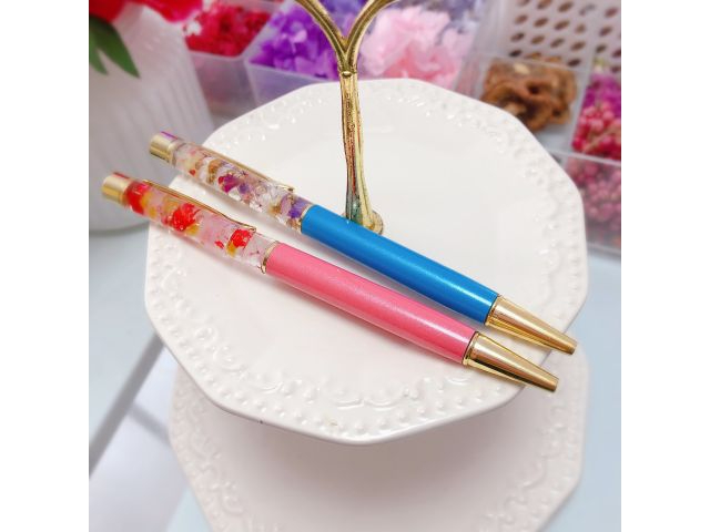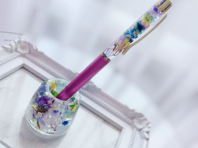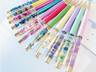 ボールペンにお好きなお花やパールを入れて世界に一つだけの自分のハーバリウムボールペンを作れます