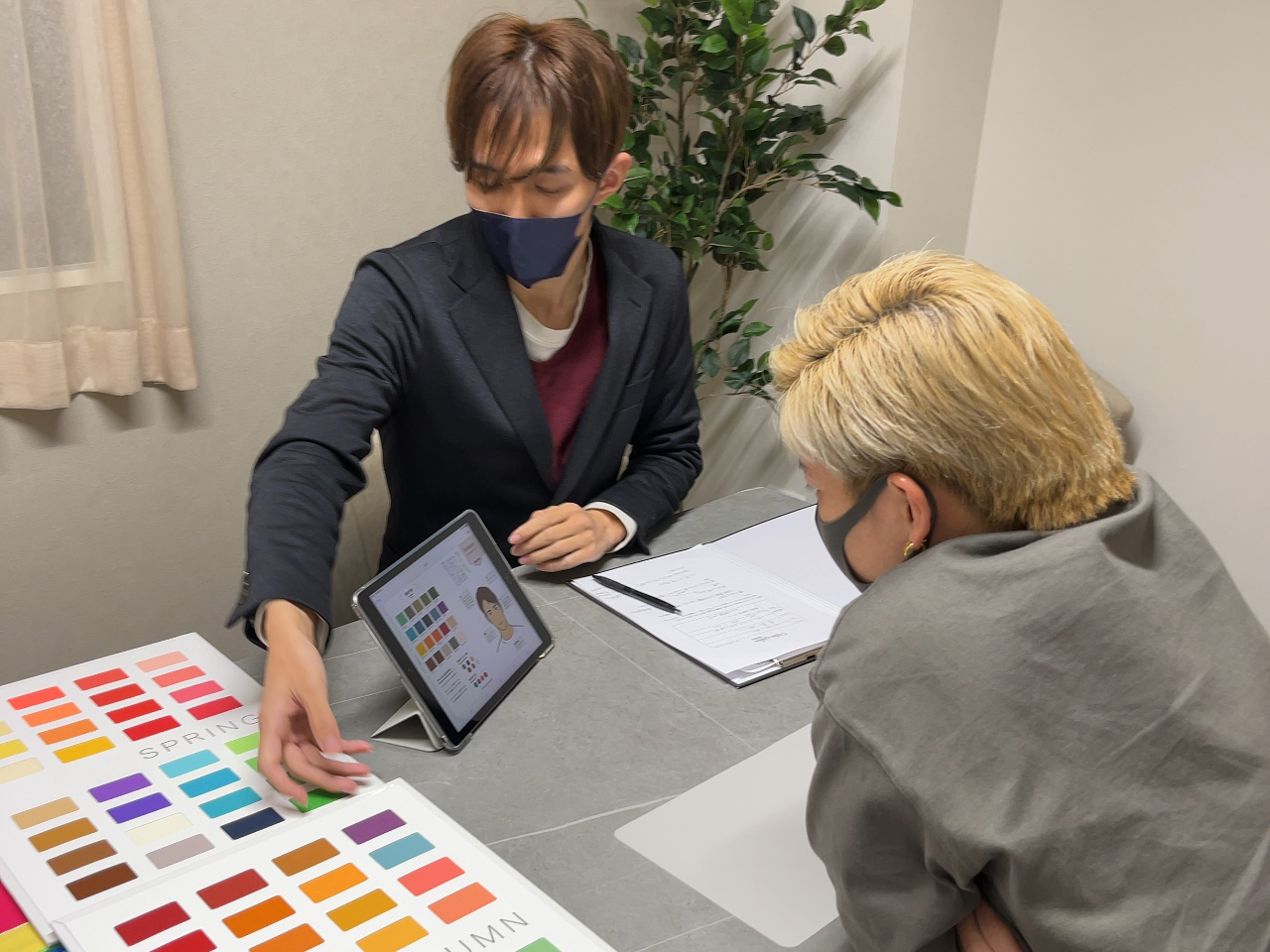 プロのパーソナルカラーアナリストが肌・髪・瞳の色からあなたに一番似合う色を診断します。