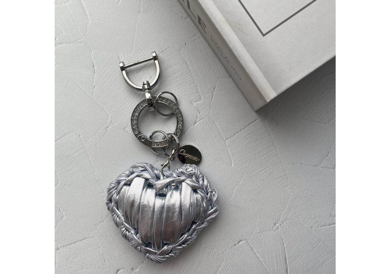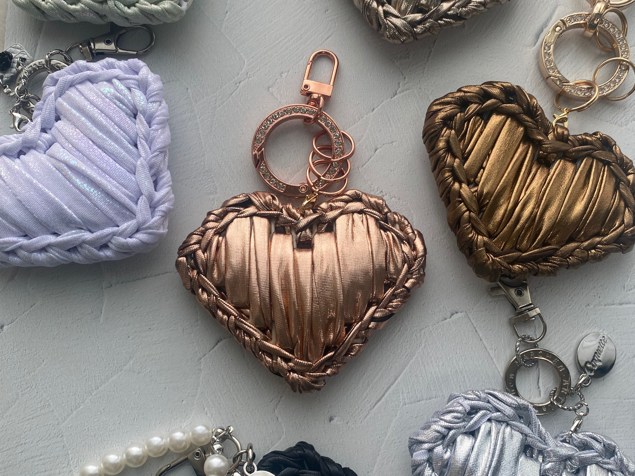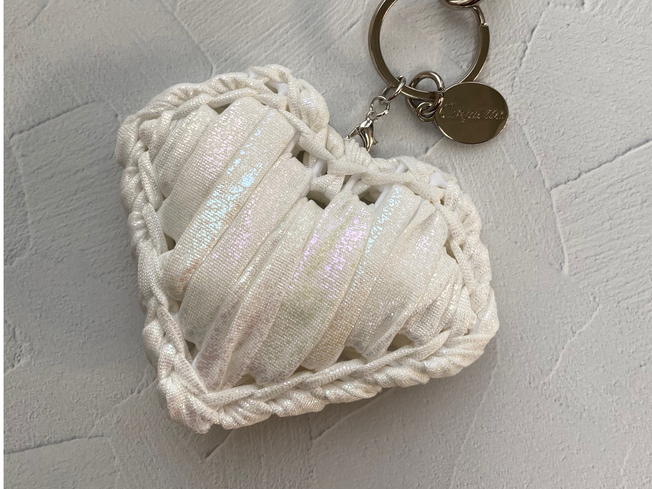 お好みの色のファブリックヤーンでハート型のチャームorキーホルダーが作れます