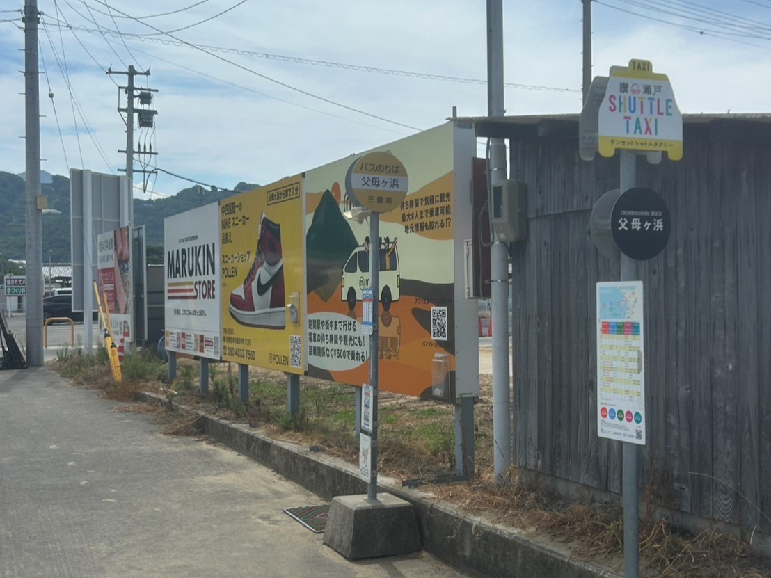 【出発地】父母ヶ浜バス駐車場内に、サンセットシャトルタクシー『父母ヶ浜』バス停があります。 定刻となりましたら出発します。