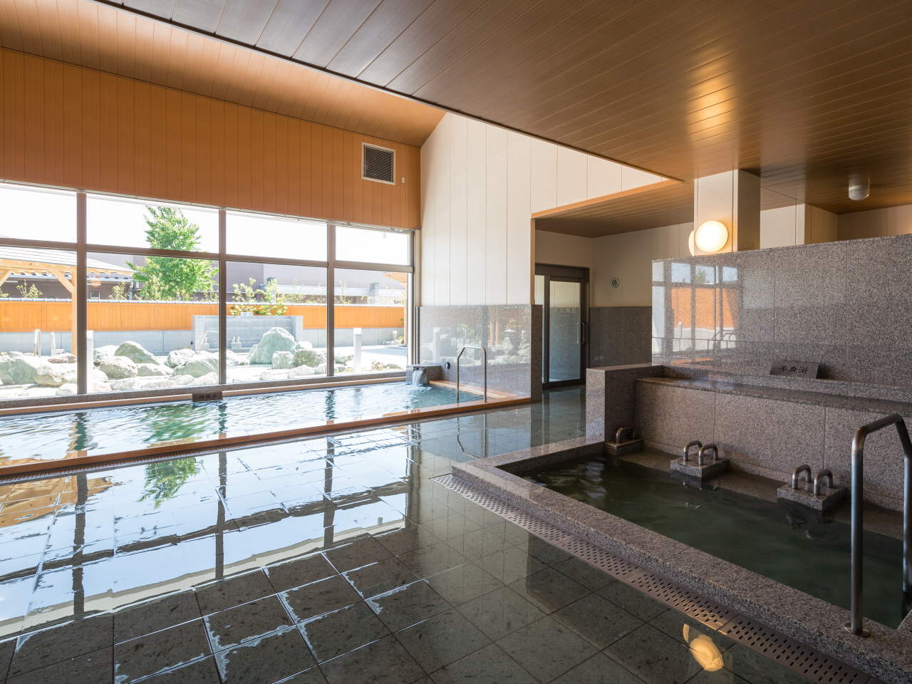 露天岩風呂、壺風呂、寝湯、ひのき風呂、座り湯、圧注浴、スーパー圧注浴、半身浴、水風呂、ロウリュウサウナ、タワーサウナ(男性浴室のみ)、アロマチームサウナ(女性のみ)