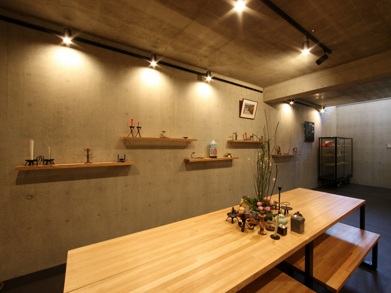 こちらが地下ギャラリー「燈庵」です。和ろうそくの灯火体験と女将のお話はこちらで。