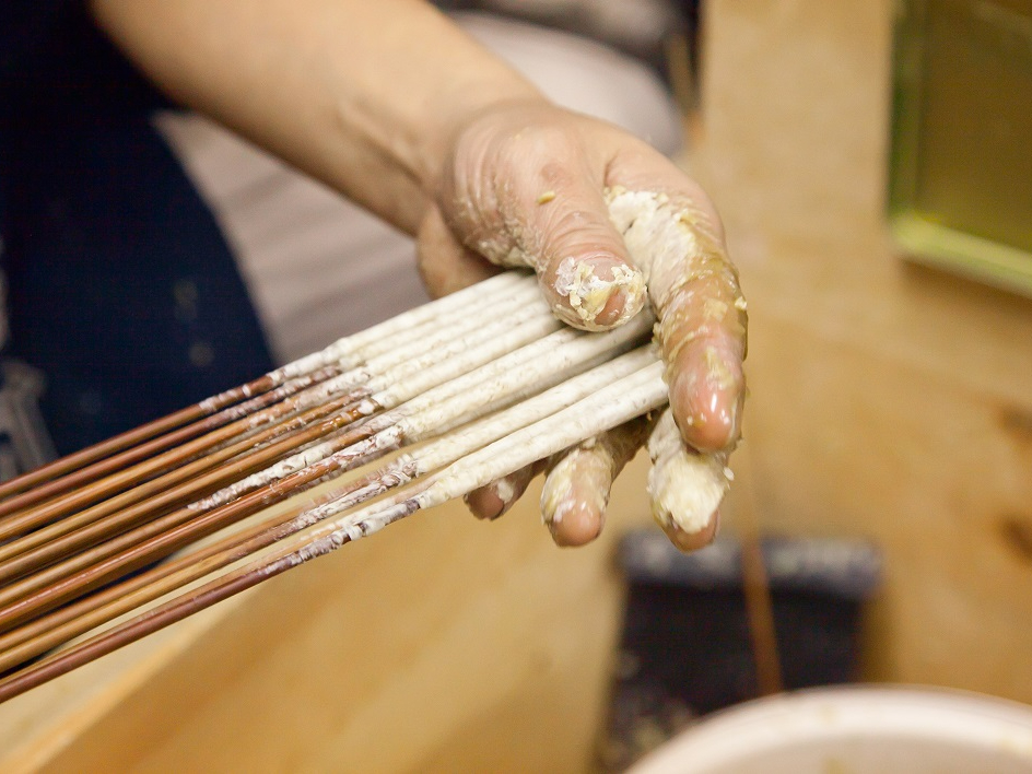 和ろうそくはハゼの蝋を使用しすべてが手作り。江戸時代から300年以上続く伝統の技法です。