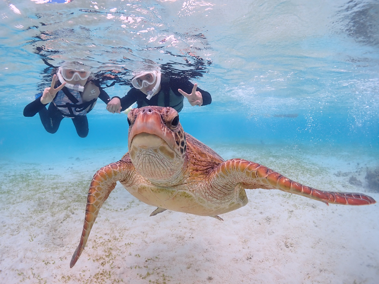 ウミガメと仲良く一緒に泳ぎましょう♪