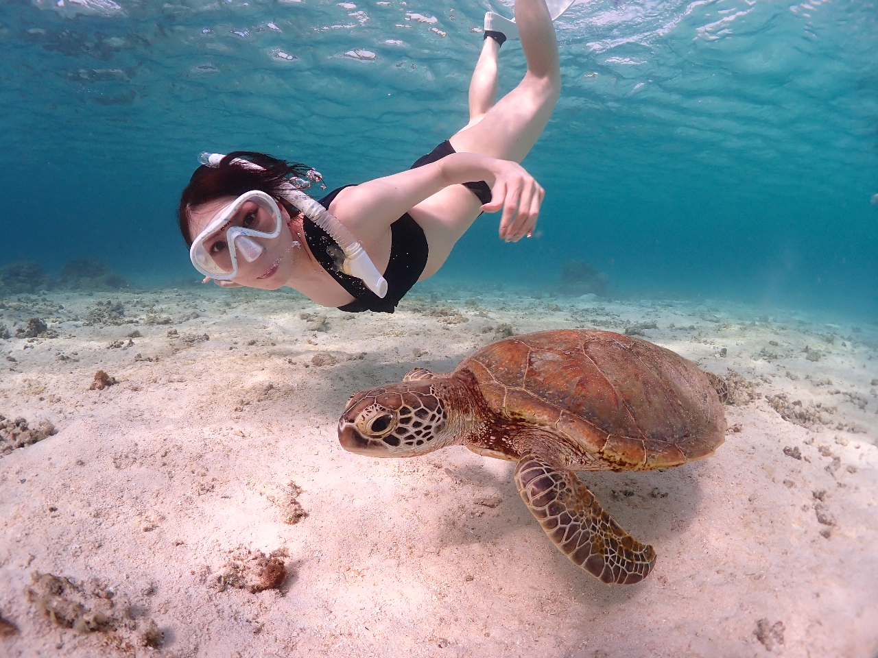 ウミガメと仲良く一緒に泳ぎましょう♪