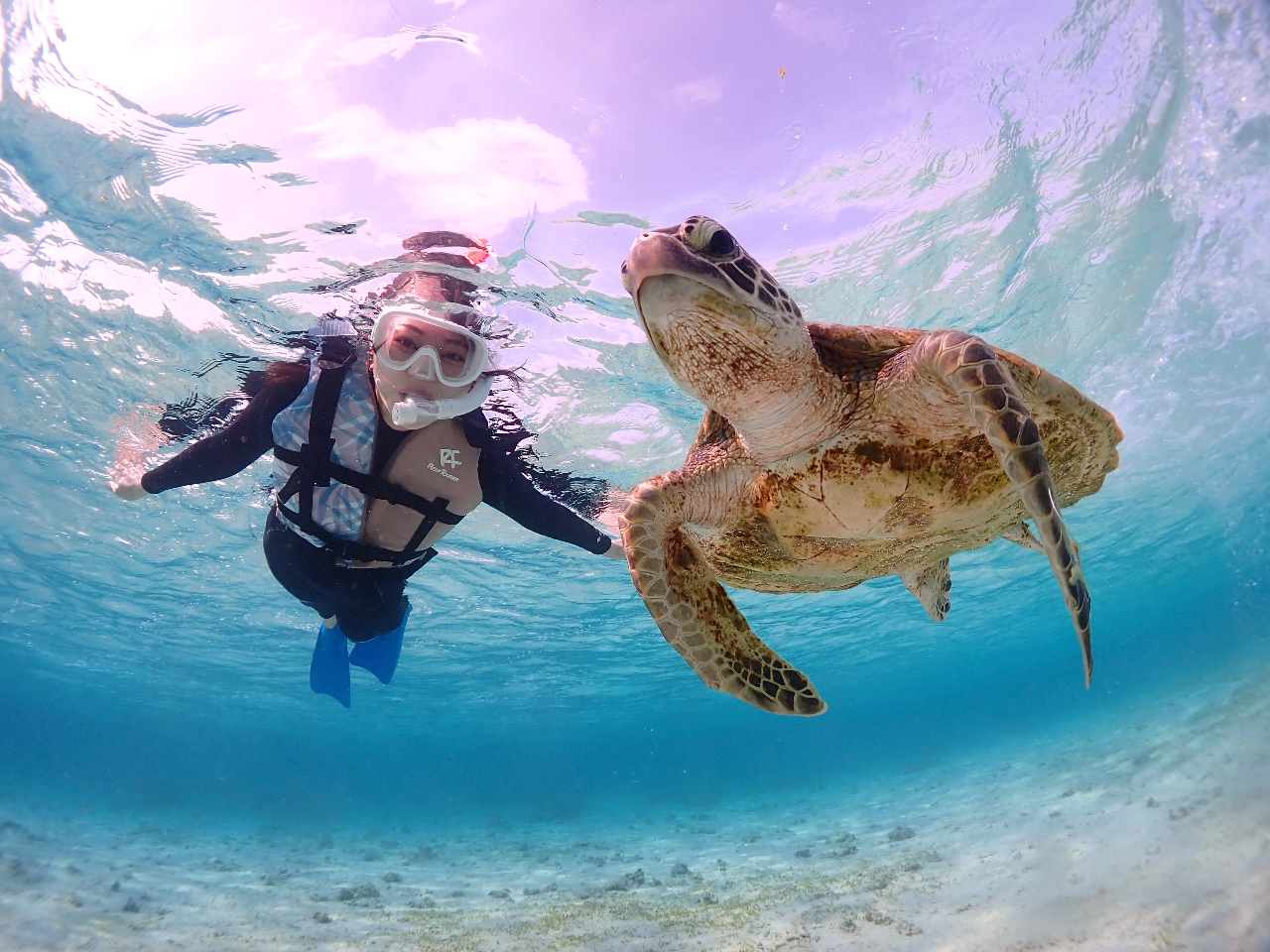 ウミガメと仲良く一緒に泳ぎましょう♪