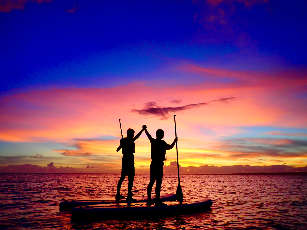 今回、初めてsupをやりました。始めた頃は漕ぐのに必死で、ボートに立つことも不安でしたが、インストラクターの人のご指導元行ったところ最終的にボードの上に立って友人と写真が取れました!