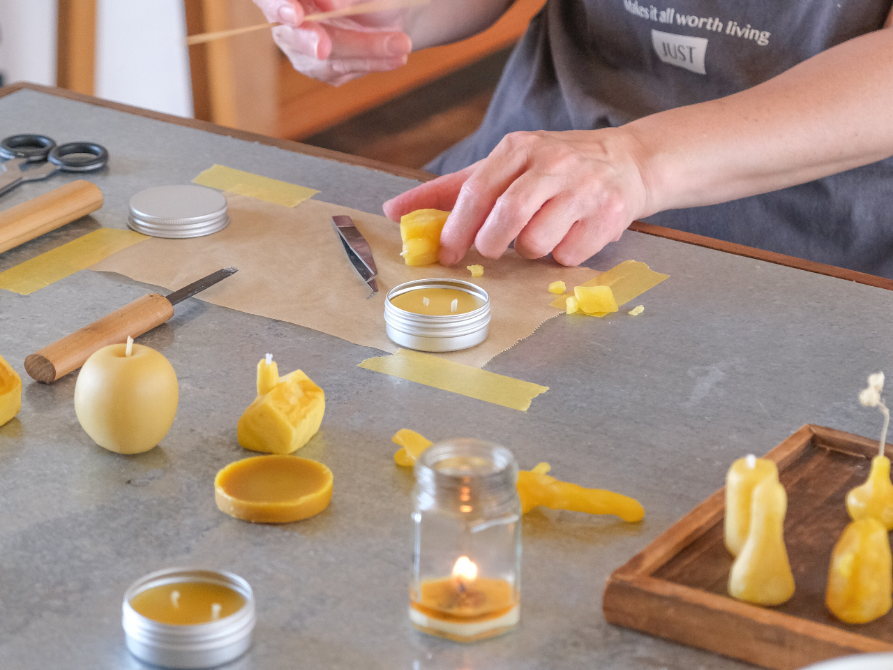 小学生くらいからのお子さんも制作できます♪質が良い信州産蜜蝋は香が蜂蜜のように甘く、癒し効果があります。