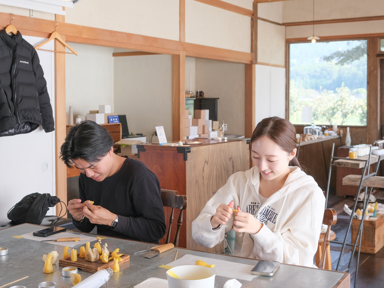 松本市産の蜜蝋(みつろう)を手で捏ねるキャンドルと、お好みの花材を入れるキャンドルの2種類制作します。旅行のお土産&思い出作りにもなります♪5歳位のお子さんから性別年齢関係なく楽しんでいただけます。